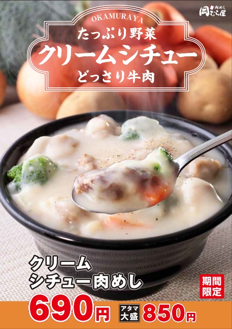 寒い冬に岡むら屋のクリームシチュー「たっぷり野菜」と「どっさり牛肉」のクリームシチュ―